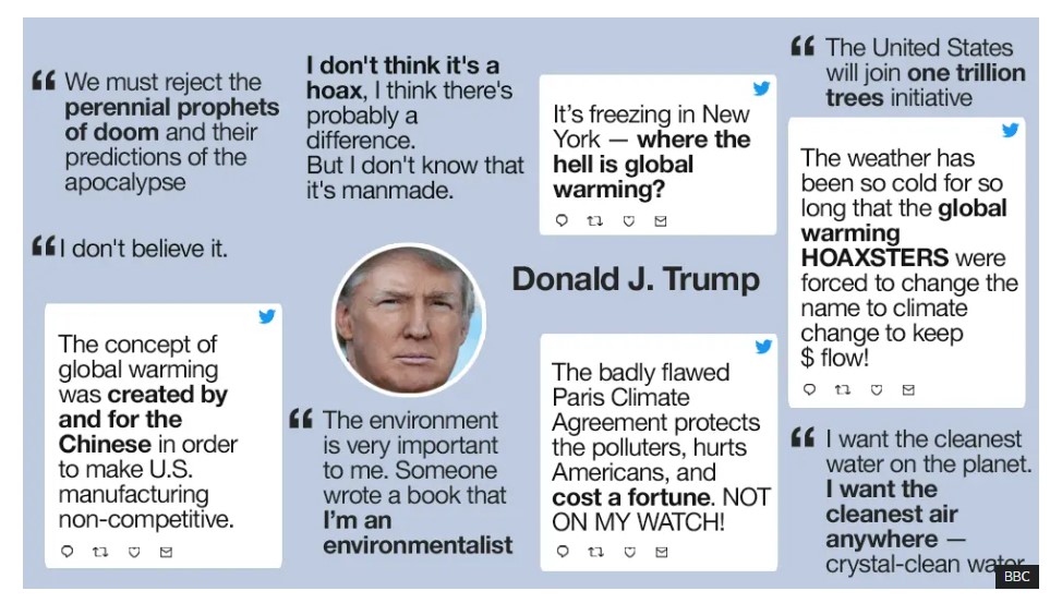 23 September 2025: In his Presidential Address at the UN General Assembly he also attacked climate policies and renewable energy, stating “windmills are pathetic,” and calling carbon footprint “a hoax.” Source