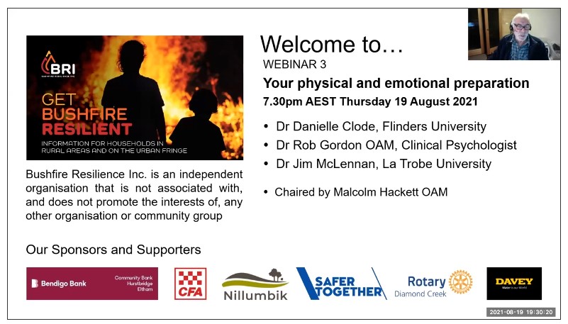 Bushfire Resilience Incorporated (BRI) is a not-for-profit Incorporated Association. The purpose of the association is to facilitate the provision of information about bushfires to the community.Their objective is to provide high-quality, evidence-based, cost-free, best practice bushfire knowledge to people living with bushfire risk.BRI provides information to people living with bushfire risk. They have been provid free webinars since 2020 with new series being added every year since.